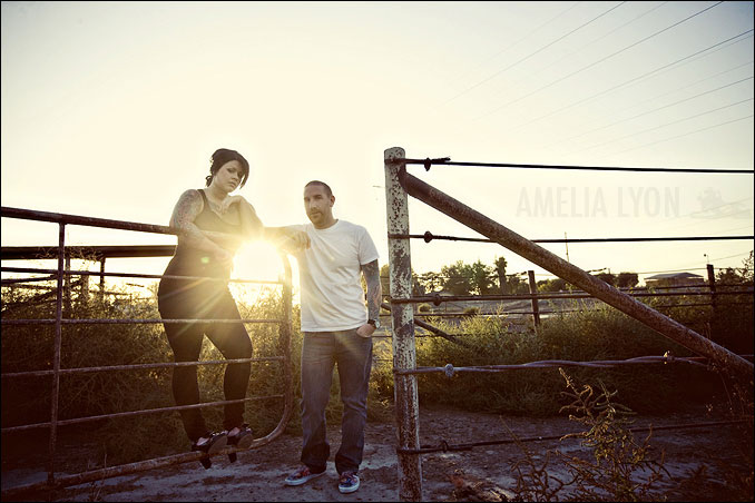 Melissa + Bryan are works of art, literally! I was super drawn to them when I first met them months back at our consultation meeting. I loved their style, look, and attitude. When we were planning their engagement session I was super excited because I had been waiting for the perfect couple that would fit a specific location I had been eyeing for a while now. We made our way to one of the many abandoned farm houses in Chino. Melissa + Bryan definitely were the the best for this location look and feel. I had a crazy hard time narrowing down the images for this post, so I'm posting more than usual for an engagement session, but I truly am in love with the session as an overall work of art.